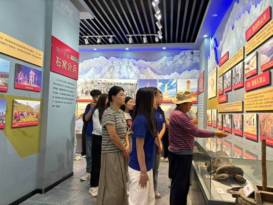 参观学习中,通过战场遗址实景、西路军在肃南的活动示意图以及相关文字介绍,社会实践团了解了1937年3月14日,西路军军政委员会在肃南县祁连山腹地红石窝山召开了最后一次会议——“石窝山会议”,以及红西路军在肃南战斗的悲壮历程。在学习过程中,同学们齐唱红色歌曲缅怀革命先烈,重温革命信仰分享研学体验,满载对峥嵘革命历史的感触和新时代青年使命的思考。